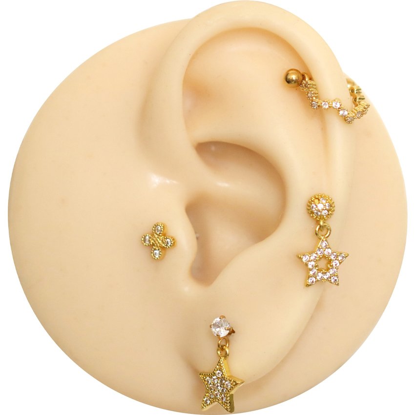 Zirkon Taşlı Yarım Halka 6x1,2mm Gold Çelik Piercing, Lobe-Helix-Kıkırdak